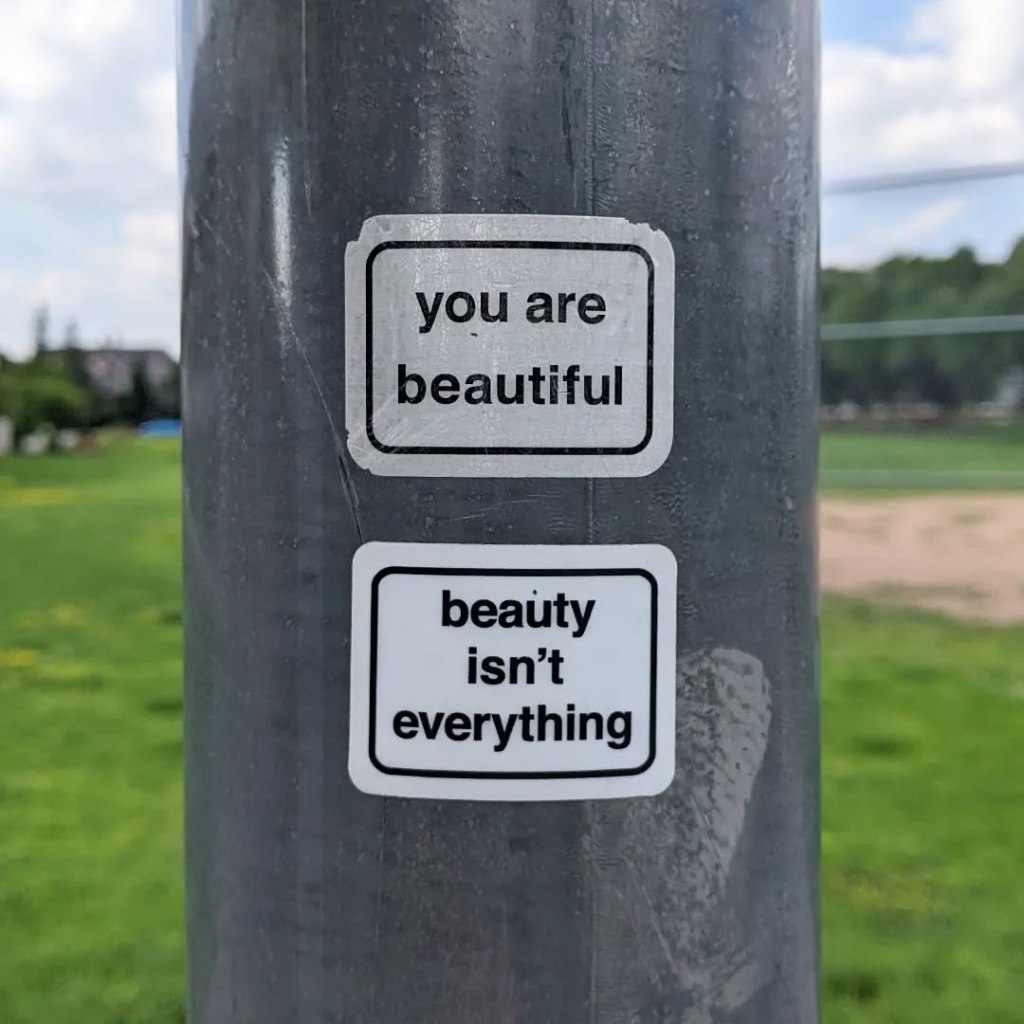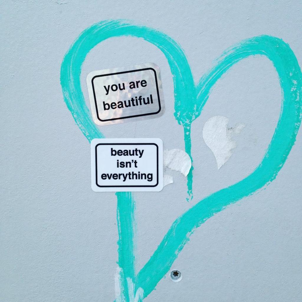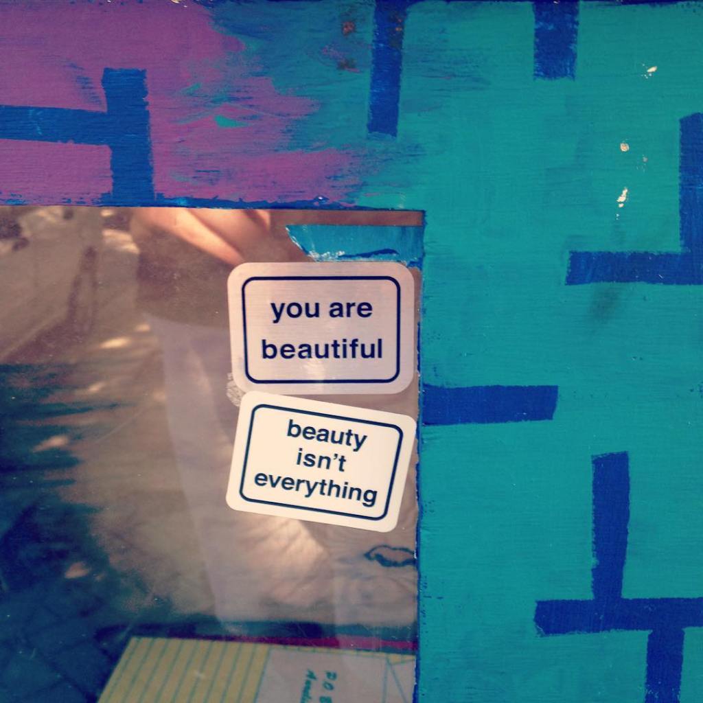 Beauty Isn’t Everything offers an alternative to Matthew Hoffman’s celebrated You Are Beautiful project. Participants can use the hashtags #yabsticker and #youarebeautiful to put their stickers in dialogue with the original project.