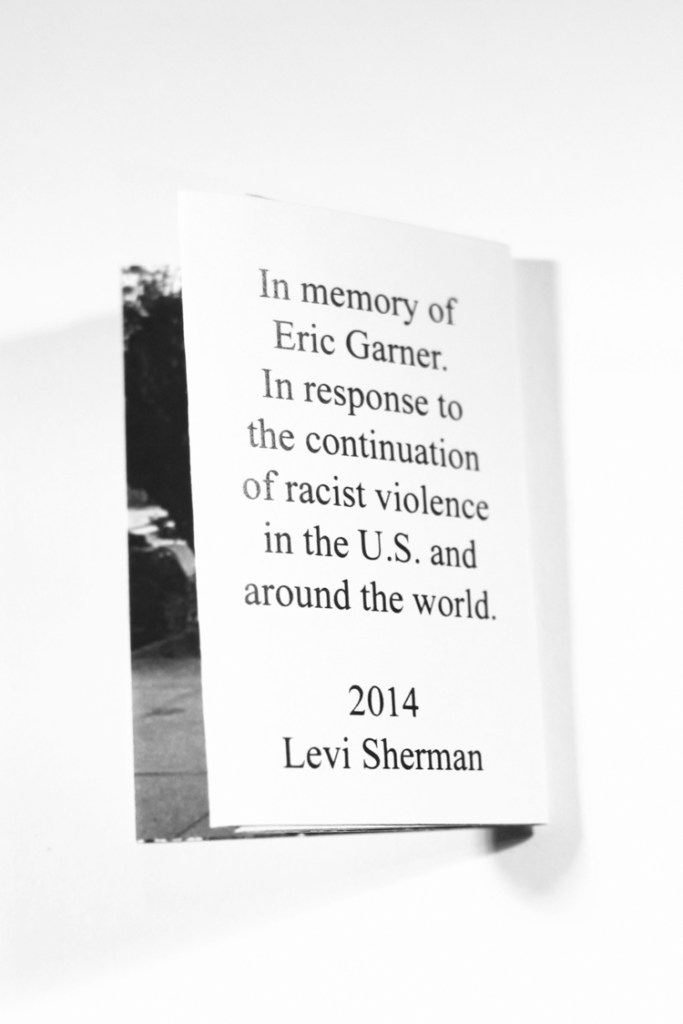 The books were distributed freely in public places during protests surrounding Garner’s case, Ferguson, and others. To that end, the book is Xerox printed and pocket-sized (about 1 × 2 in. folded) to allow for democratic distribution.