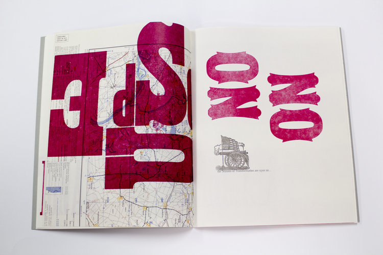 Letterpress, monoprint, and acrylic paint on various papers, including USGS maps