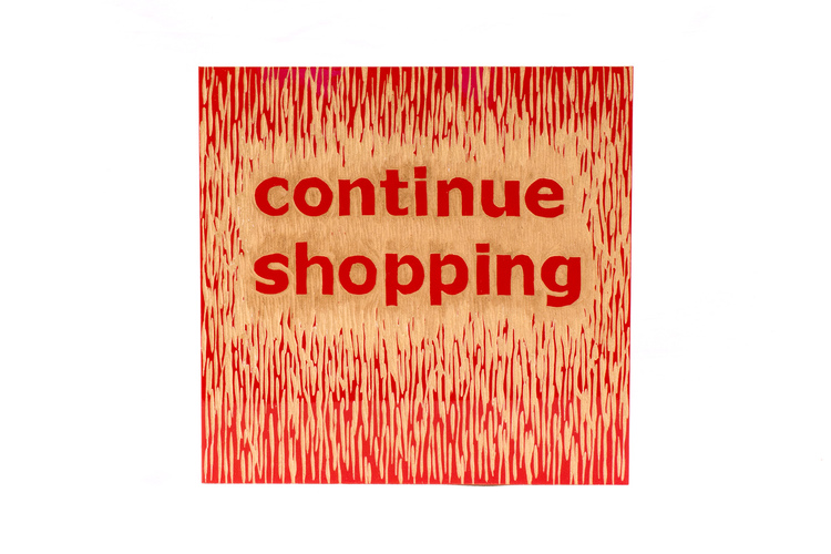 The works in Ikea (Call to Action) feature phrases from the Ikea website and similar home goods retailers. Rather than focus on advertising, as I had in much of my work, I wanted to explore the more subtle language that readers are exposed to merely navigating a website. Generic phrases, like “continue shopping” are a staple of user interface — they seem innocuous and go mostly unnoticed. By removing them from their context and reconfiguring them graphically, the Ikea pieces betray the propagandistic undertones of these little phrases. Detached from a particular product or company, these blunt imperatives become propaganda for the whole system of consumer capitalism.