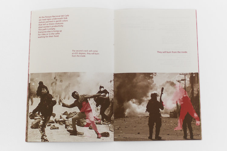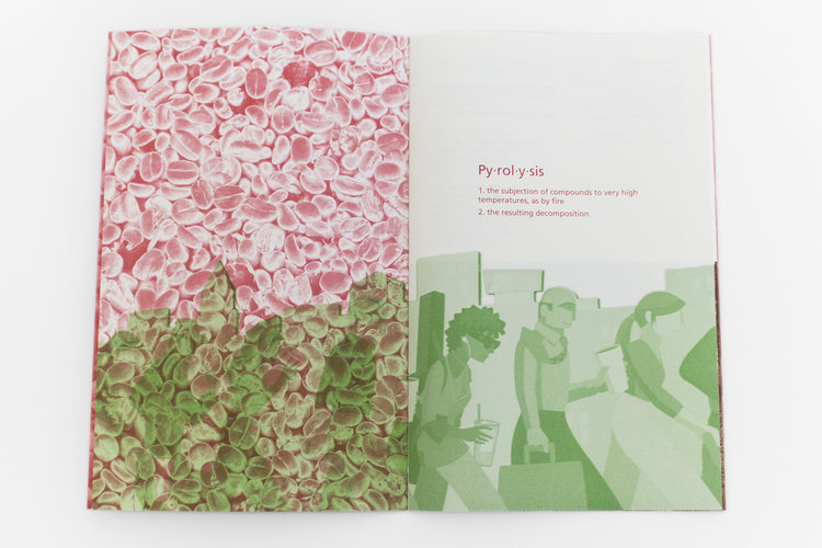 Pyrolysis interweaves news reports, advertising copy, and a report of our own time in Colombia to examine the contradictions between reality and representation as well as the inherent contradictions in the mode of production that dominates the coffee industry. Even as the book raises the possibility of change, the influence exerted by the past on the present manifests in a ceaseless boom-bust cycle and a predictable pattern of violence. It is this inevitable conflict that the smooth facade of advertising and propaganda must cover, and which remains discernible beneath these efforts.