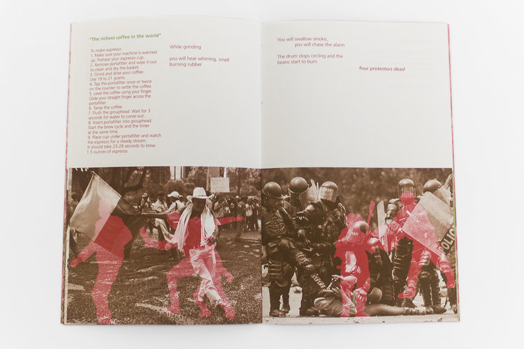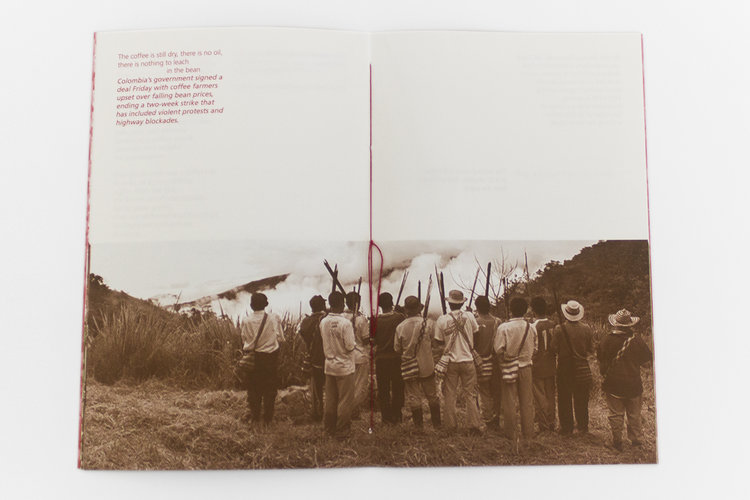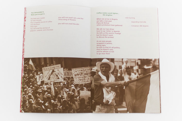 In 2014 I traveled with my collaborator, Carley Gomez, to Colombia’s coffee region to see for myself how the representations of coffee production I see in U.S. advertising differ from the reality. We arrived amid labor unrest, which had begun as I first planned the trip and continued throughout the production of this book, culminating in the summer of 2016.