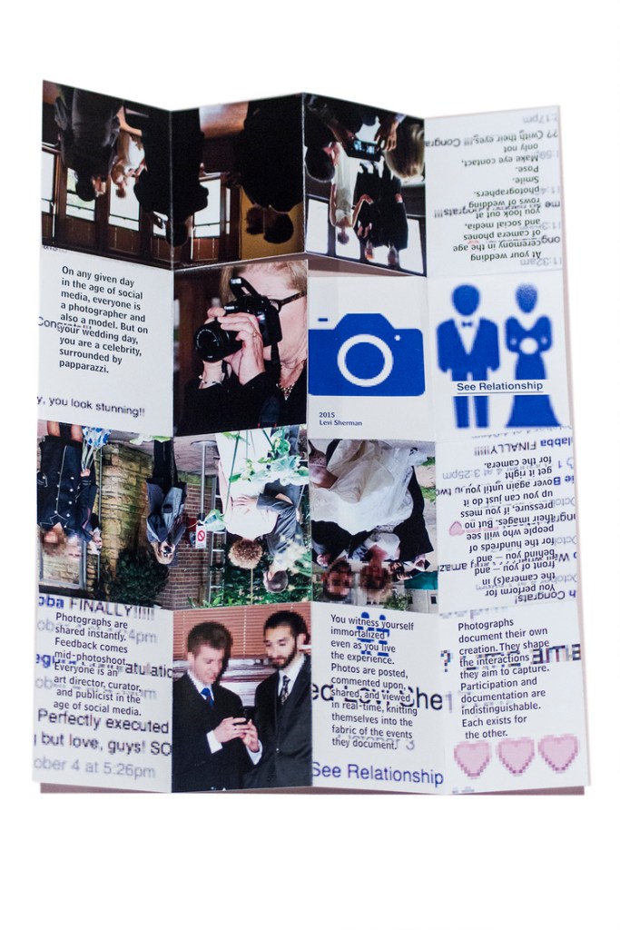See Relationship draws on a large digital repository of photographs from my own wedding to comment on how an already-performative institution operates in a culture where people are both producers and consumers of the spectacle.
