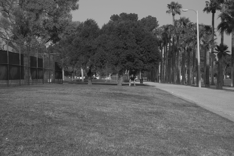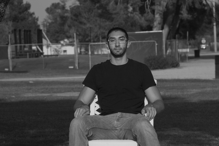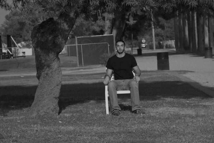 In this series of self-portraits, the camera is moved further from the sitter’s chair with each successive image. The camera was set with a 10 second timer for each shot. The photographer-subject must travel further from camera to chair each time, eventually running to compose himself in time for the shutter.